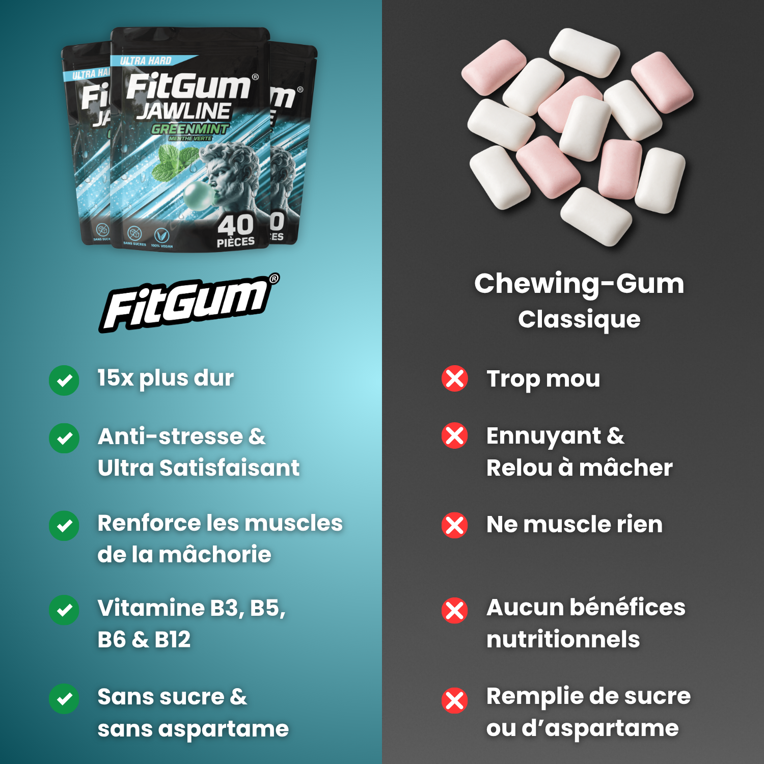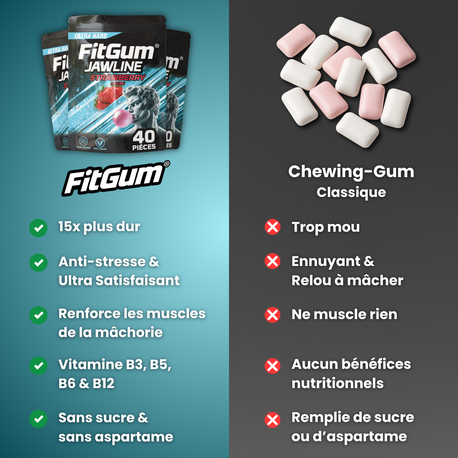 15x plus dur qu’un chewing-gum classique, pour une mâchoire sculptée en 90 jours.